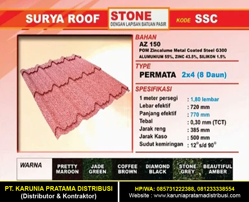 JUAL & HARGA GENTENG METAL SURYA ROOF MURAH DI SIDOARJO & SURABAYA | HP/WA: 085731222388, 081233338554. PT. Karunia Pratama Distribusi adalah distributor Genteng metal murah di Indonesia.