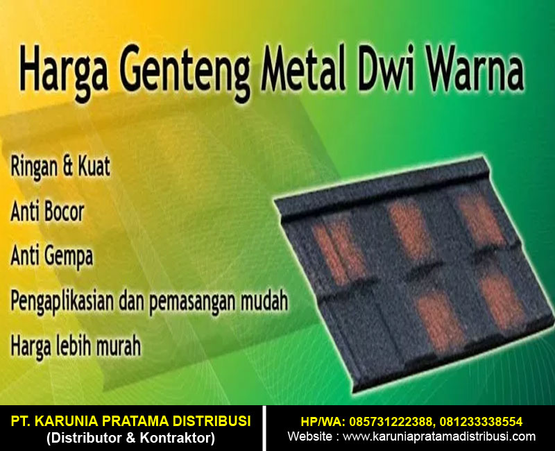 JUAL & HARGA GENTENG METAL MINIMALIS DWI WARNA MURAH DI SIDOARJO & SURABAYA | HP/WA: 085731222388, 081233338554. PT. Karunia Pratama Distribusi adalah distributor Genteng metal murah di Indonesia.